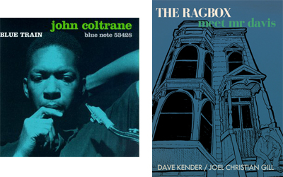 I decided to borrow from the album Blue Train from Coltrane. It’s not an exact match, just a snatching of the blue/black/green color scheme. Unless you put them side-by-side, you’d probably never get the reference. Of course, I had to do some digging to figure out that the font was Bodini.